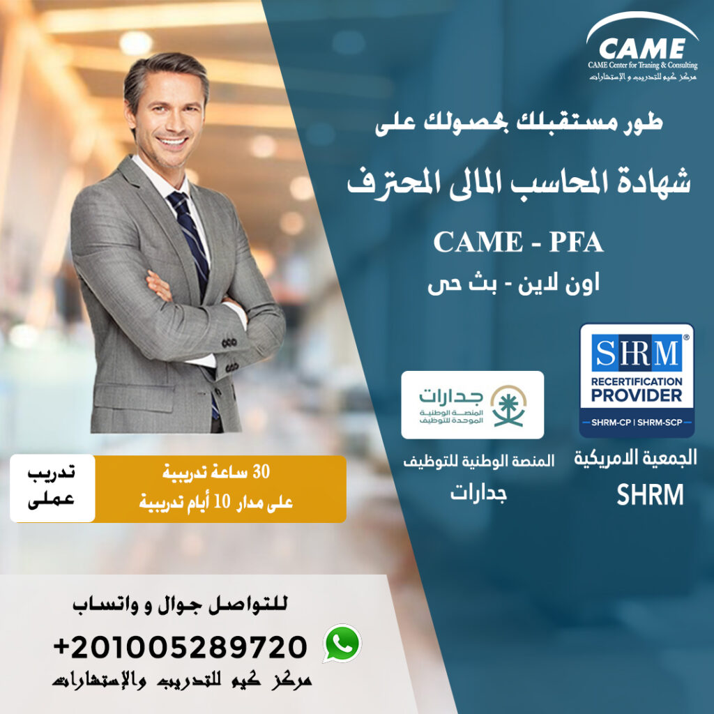 تُعد شهادة المحاسب المالي المحترف (PFA) من مركز الخبرات الإدارية والمحاسبية (كيم) أول شهادة مهنية تطبيقية في مجال المحاسبة المالية وفقًا لمعايير المحاسبة الدولية (IFRS)، وقد حصل عليها الآلاف من المحاسبين ورؤساء الحسابات والمديرين الماليين العاملين في كبرى الشركات والجهات الحكومية بمختلف الدول العربية. تقوم على تصميم وإصدار هذه الشهادة وحدة المحاسبة والإدارة المالية بمركز كيم، والتي تضم نخبة من صفوة أساتذة الجامعات، والخبراء المتخصصين، والمحاسبين القانونيين المعتمدين (CAME–FAU)، بما يضمن محتوى علميًا رصينًا وتطبيقًا عمليًا يواكب متطلبات سوق العمل.